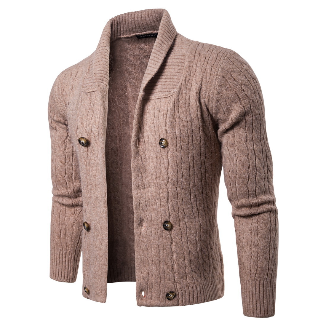 Winter New Casual Solid Color Twist Thick Double-breasted Knit Cardigan |