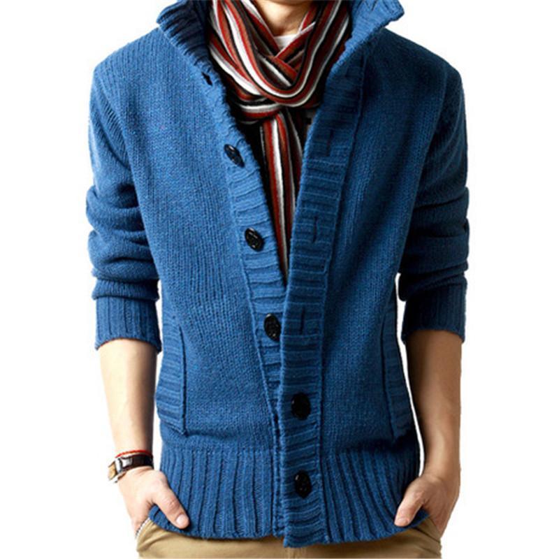Men's Stand-Up Collar Pocket Knit Cardigan Coat