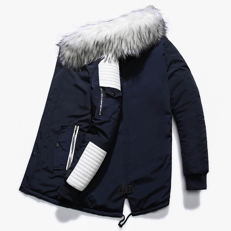 New Winter Jacket Men Thicken Warm Casual Long Outwear Hooded Collar Jacket |