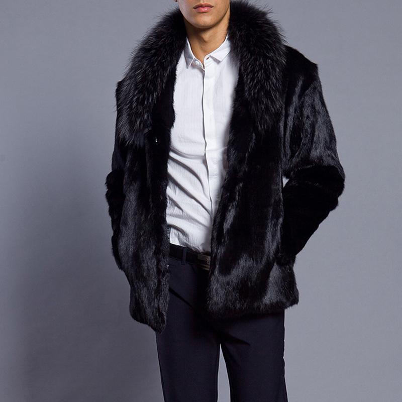 Product Name Mens Green Fruit Collar Faux Fur Coat Black