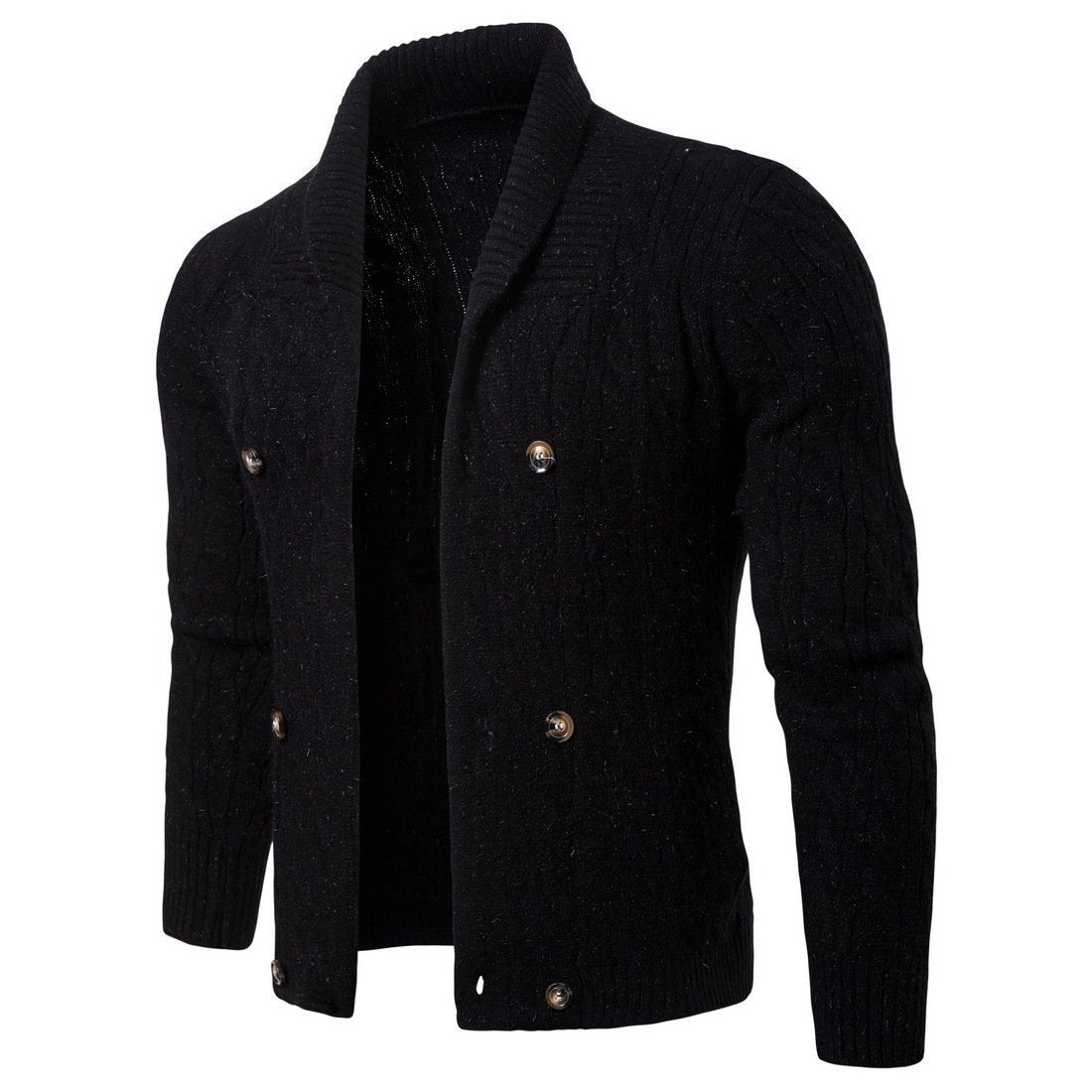 Winter New Casual Solid Color Twist Thick Double-breasted Knit Cardigan |